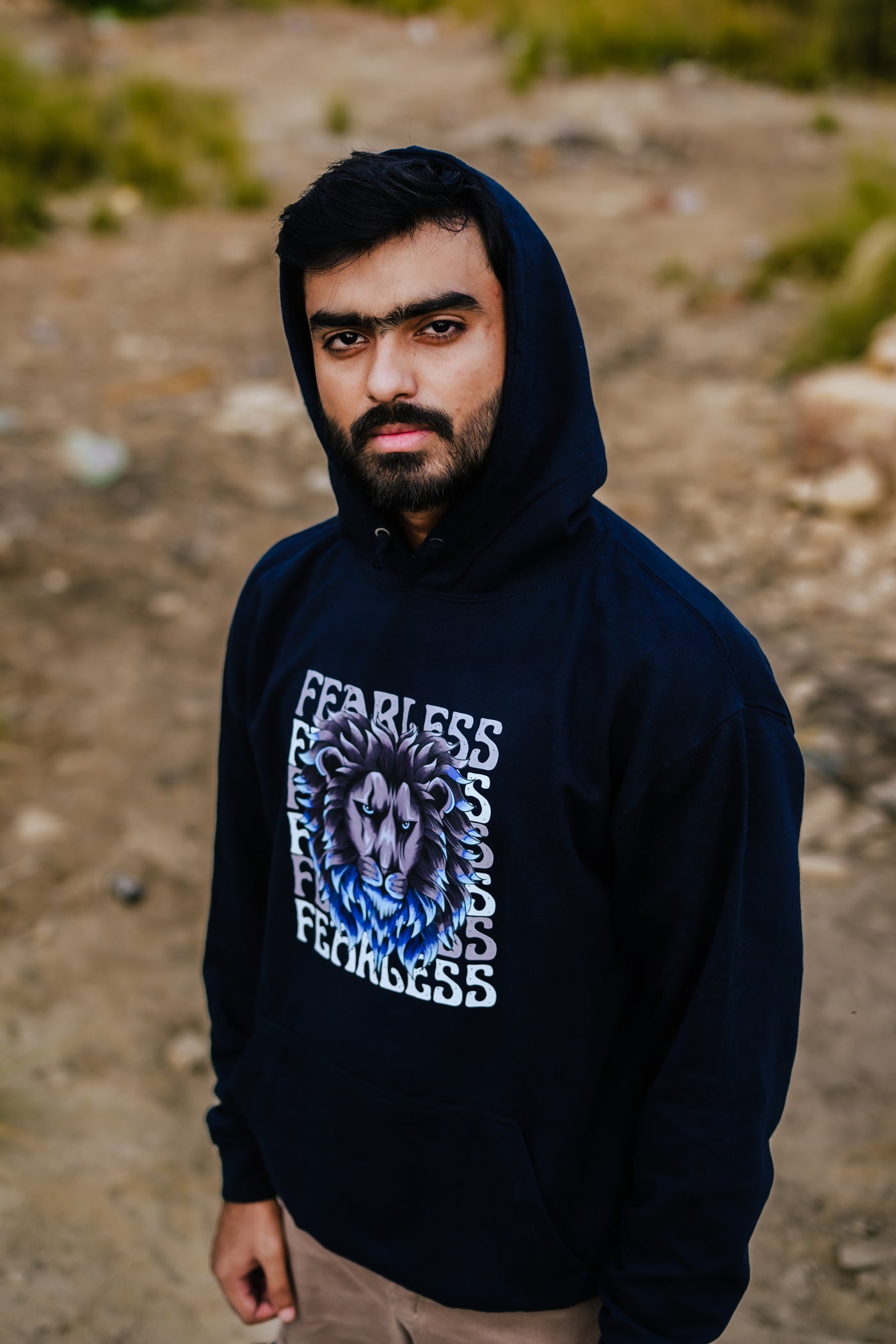 Fearless Lion Graphic Navy Blue Premium Hoodie